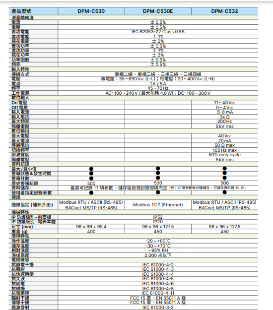 臺達多功能集合式電表 DPM 系列